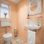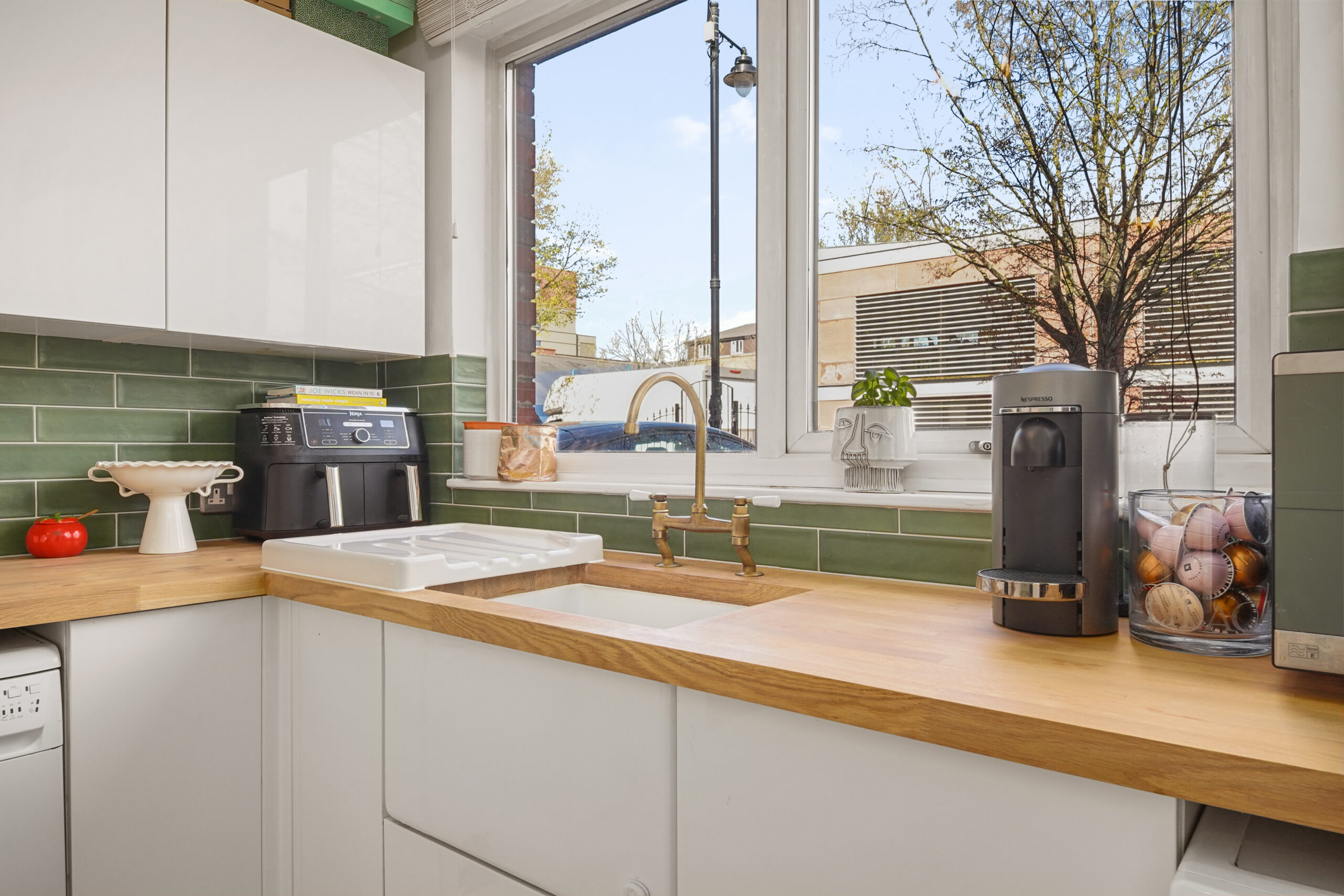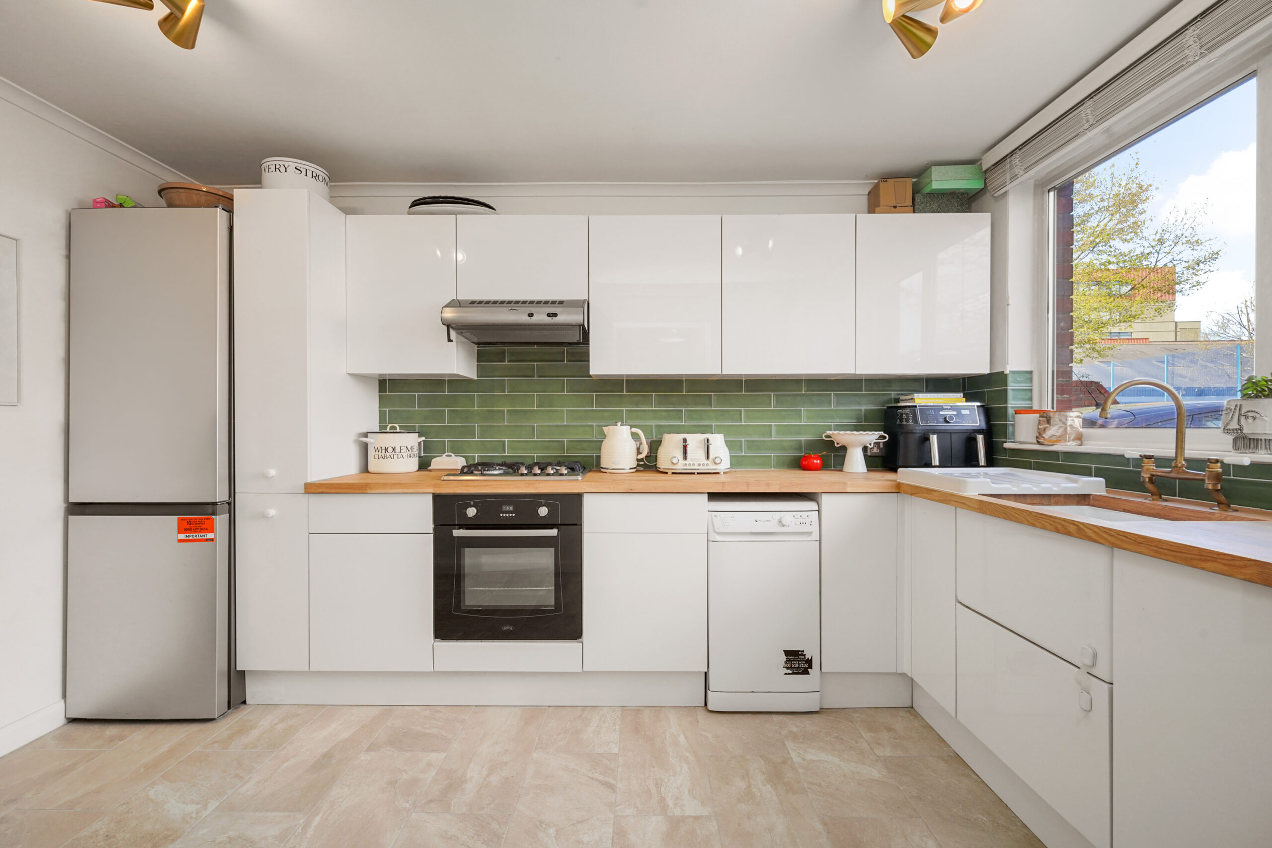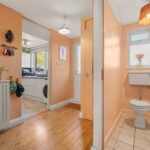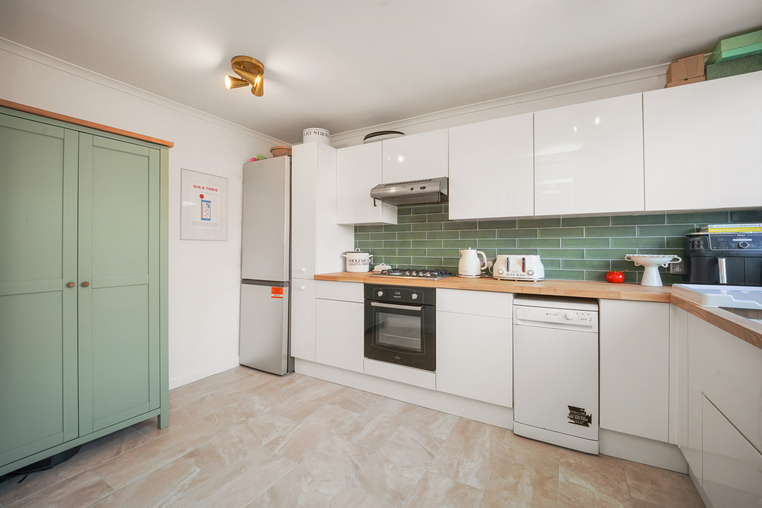 On entering, you step into a spacious hallway with two generous storage cupboards, ideal for bikes or prams, along with a convenient downstairs cloakroom. To the right sits a recently modernised kitchen, with a large front facing window that fills the space with natural light.