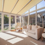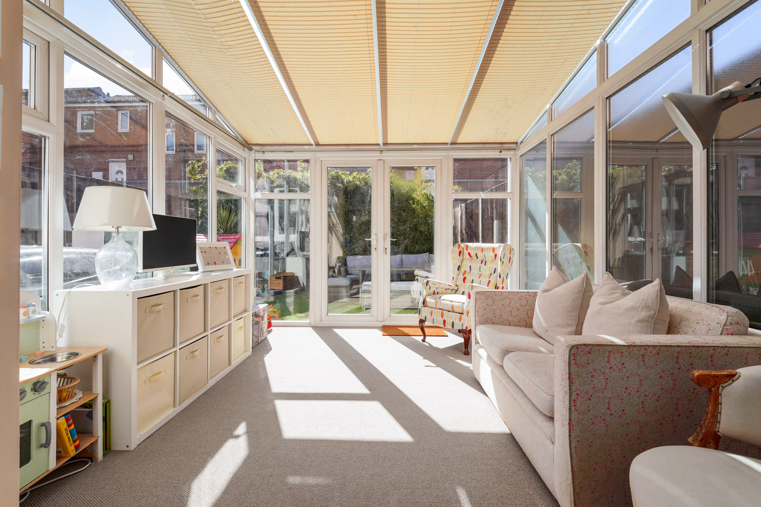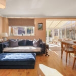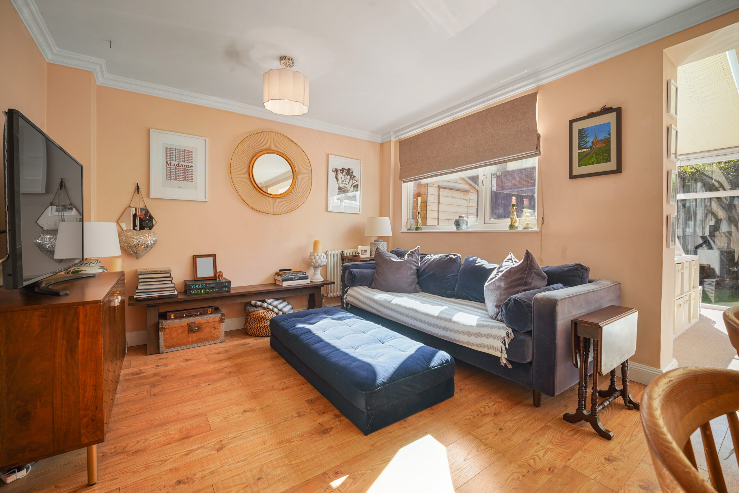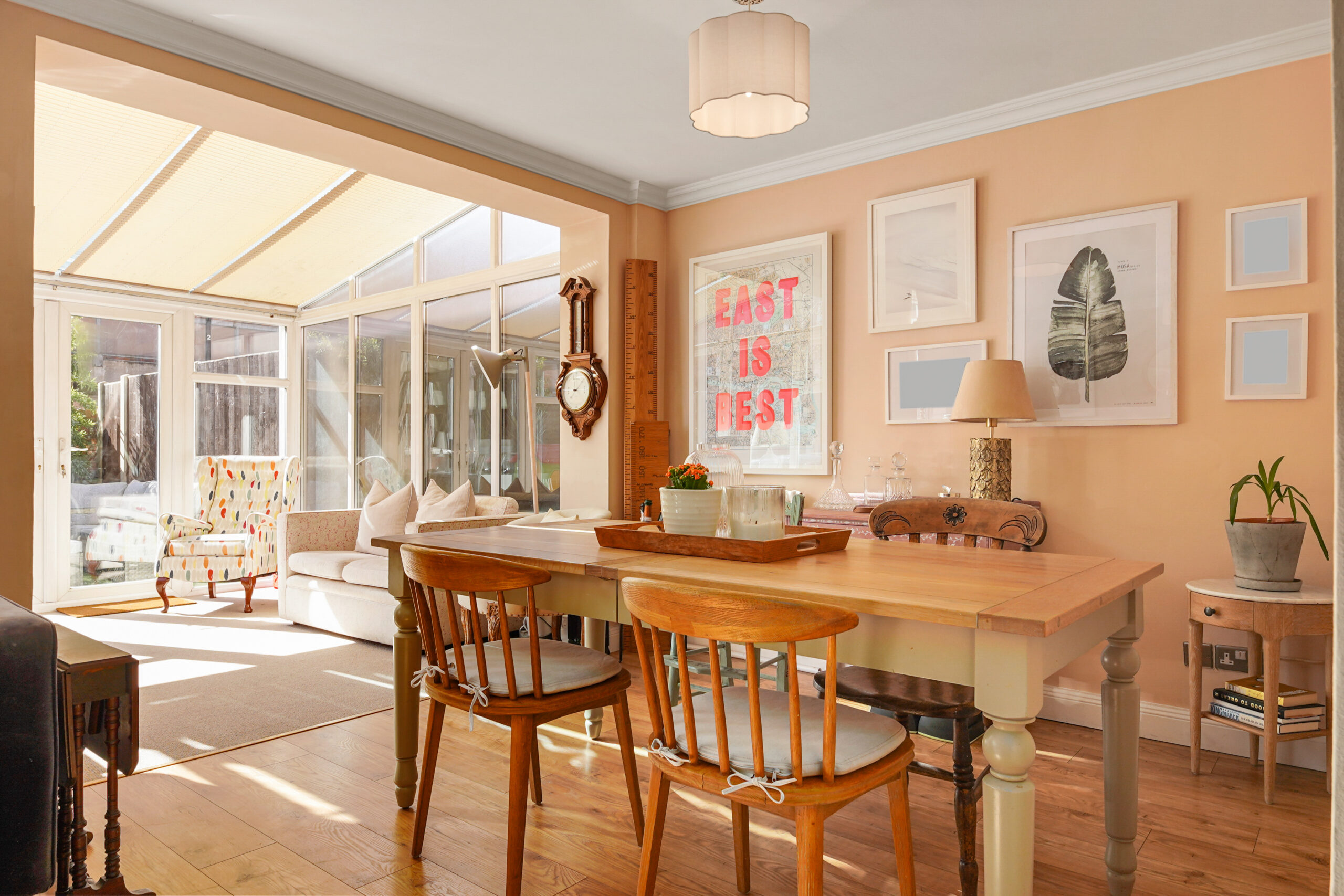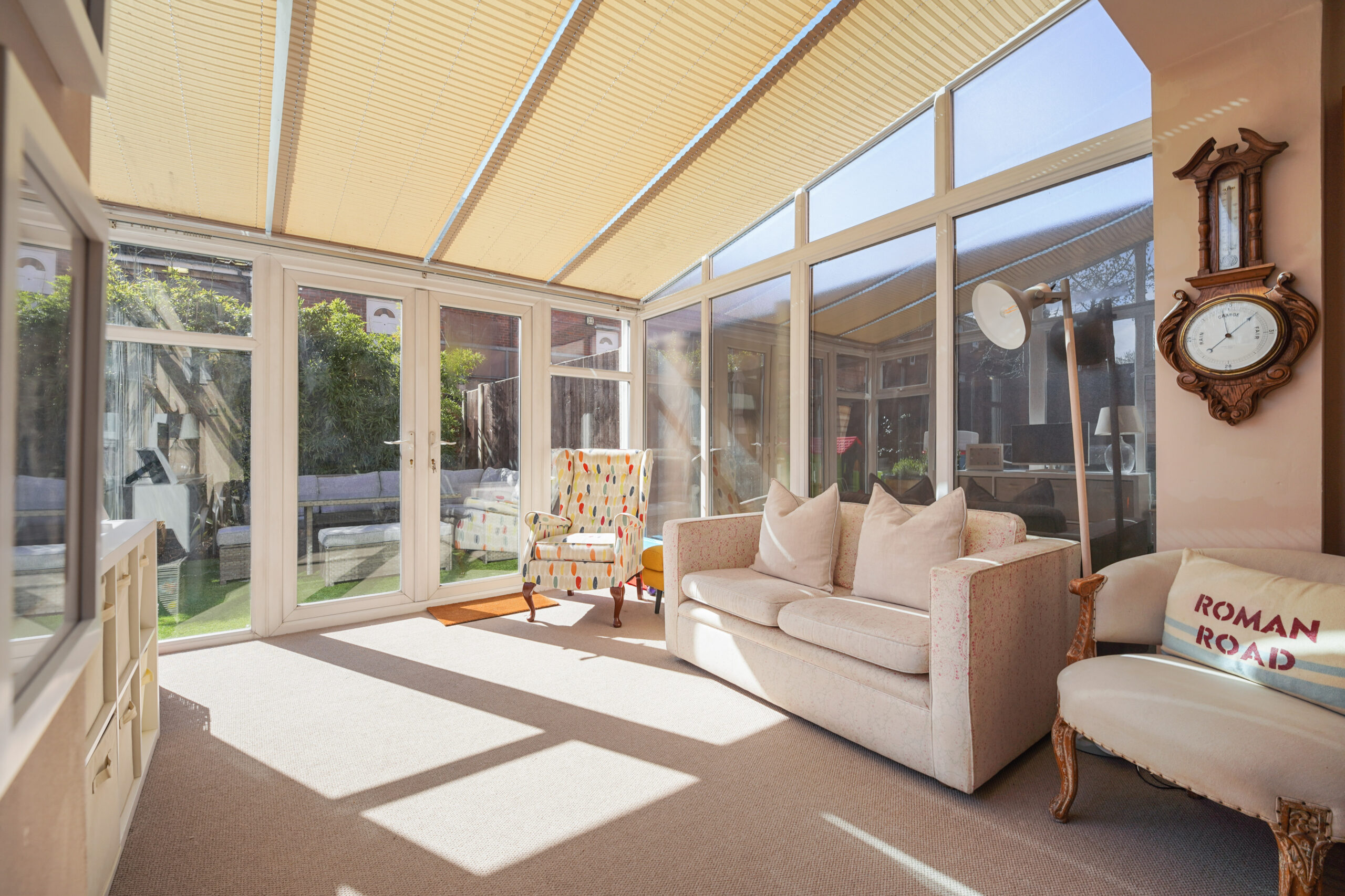 The hallway then opens into an impressive reception room, undoubtedly the heart of the home. Spanning the full width of the property, this expansive space flows seamlessly into the conservatory, complete with underfloor heating, with double doors opening directly onto the southwest facing garden.